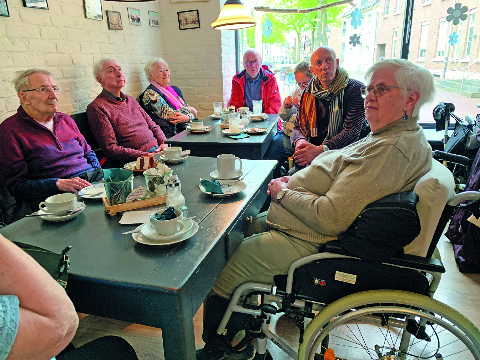 Am Donnerstag, dem 17.April fuhren zehn Bewohner der Wohngemeinschaft „Am Teich“ nach Grieth. Die vorausgesagten Regenschauer hielten uns nicht zurück. Die Autofahrt durch die grüne Frühlings-Landschaft gefiel den Bewohnern. Eine Dame sagte: „Ich könnte stundenlang fahren und die Aussichten genießen“.