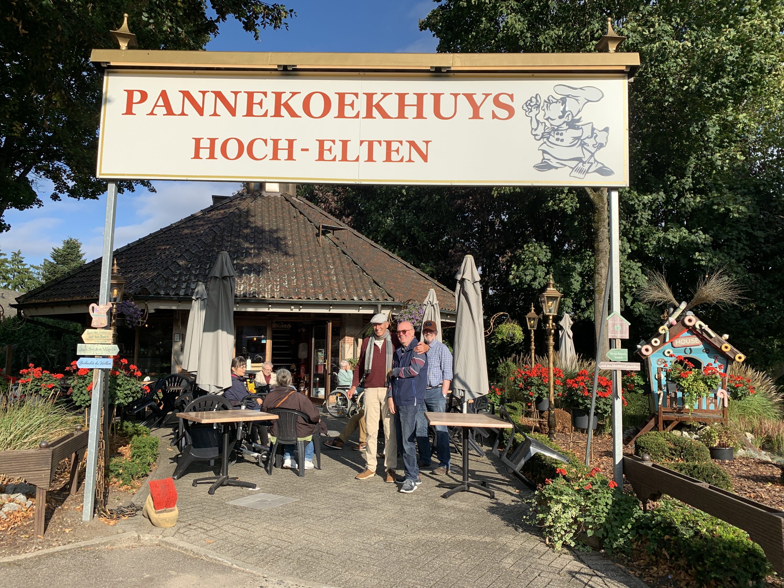 Die Bewohner der Wohngemeinschaft „Am Teich“ erfüllten sich am 18.09.2025 einen Wunsch: Ein Ausflug nach Hoch-Elten. Schon die Fahrt über die Emmericher Rheinbrücke weckte Erinnerungen. Im urigen „Pannekoekhuys“ wurden wir freundlich empfangen und genossen süßen und herzhaften Pfannkuchen. Jemand erzählte, dass es diese Gaststätte seit 1995 gebe; davor sei es ein Kiosk gewesen. Nach dem Essen nutzten einige Bewohner die Gelegenheit zu einem Spaziergang, andere genossen den Ausblick auf der Terrasse.
