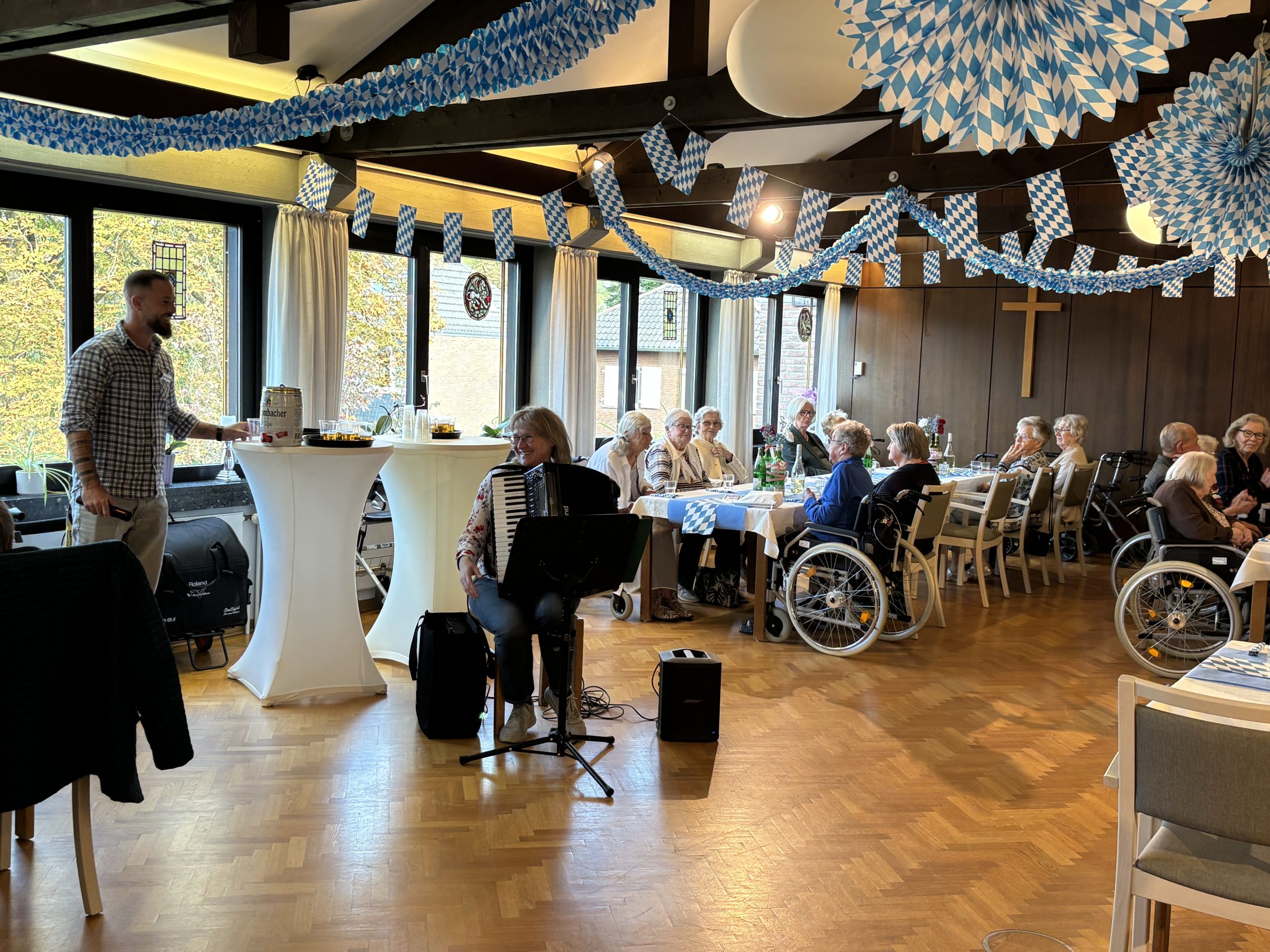Bei stimmungsvoller Musik wurde geschunkelt, gelacht und mitgesungen. Die Bewohner genossen die fröhliche Atmosphäre in vollen Zügen und fühlten sich fast wie auf der Münchener Wiesn.